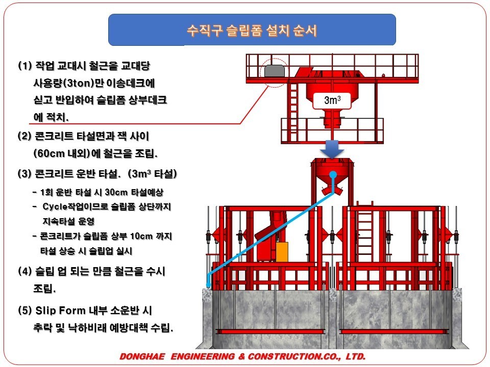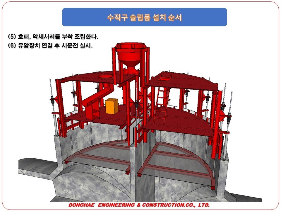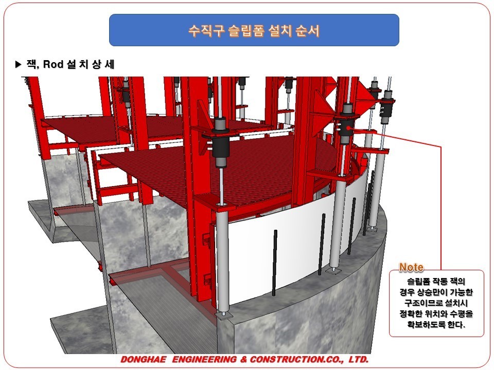 - 슬립폼 작동 잭의 경우 상승만이 가능한 구조이므로 설치 시 정확한 위치와 수평을 확보하도록 한다.