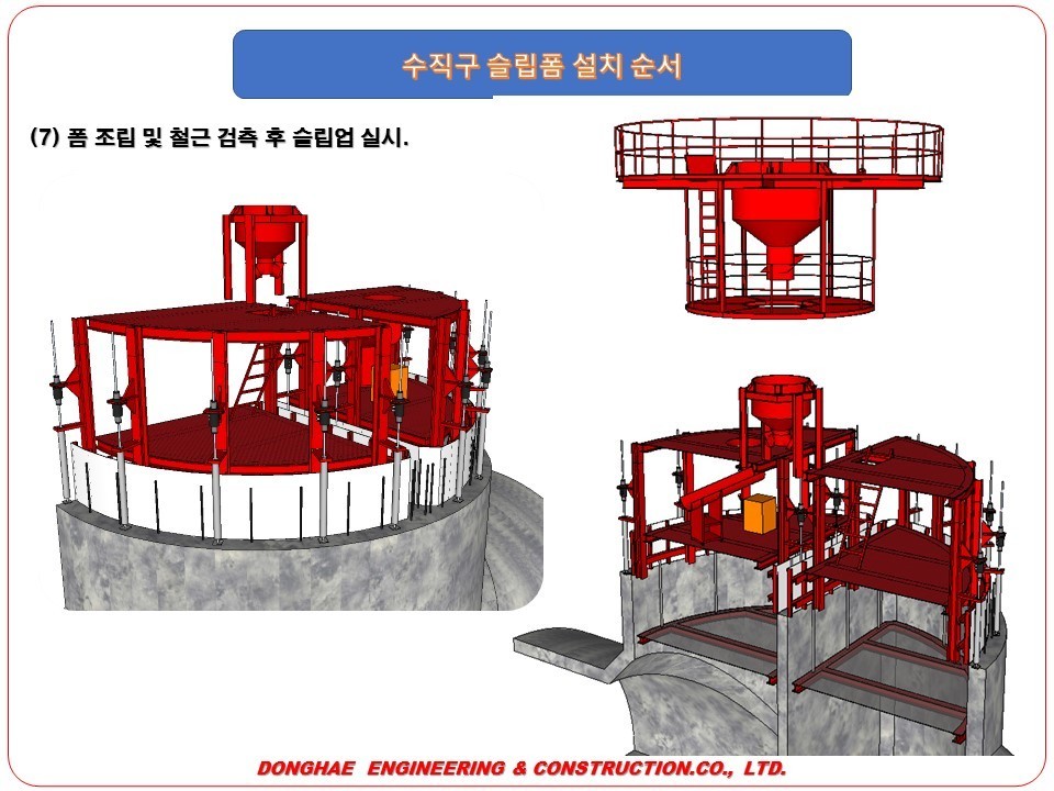 7. 폼 조립 및 철근 검축 후 슬립업 실시